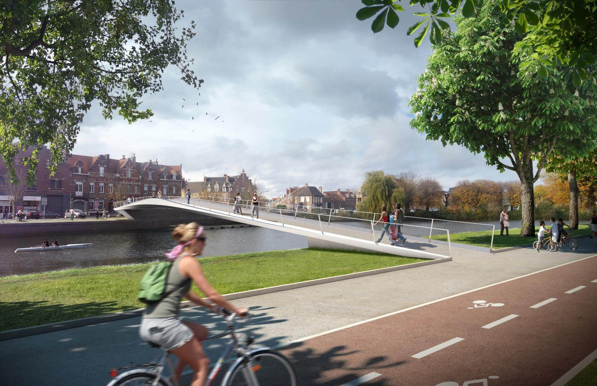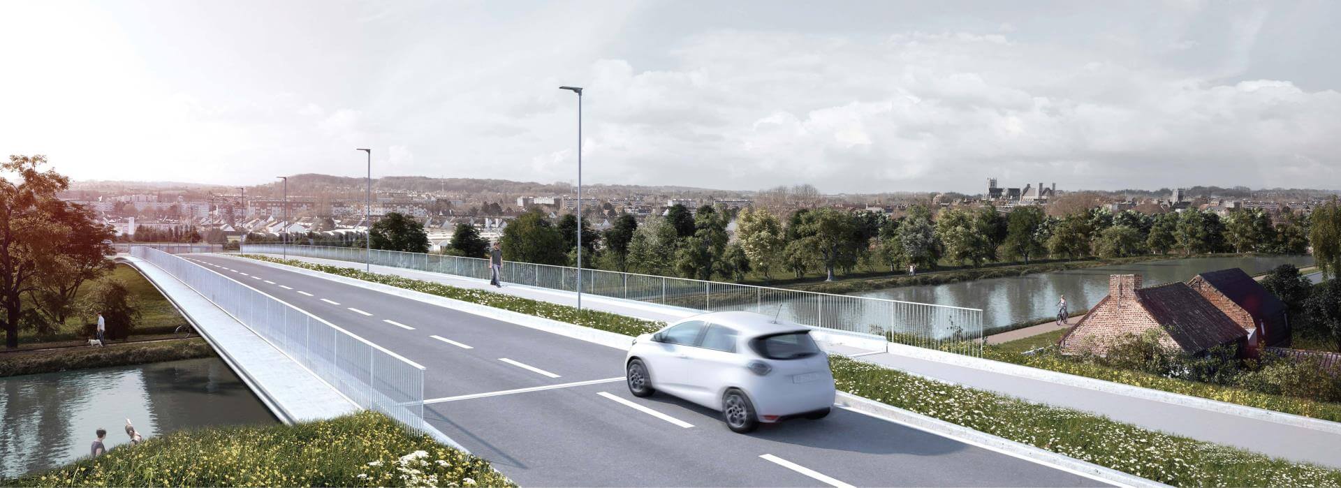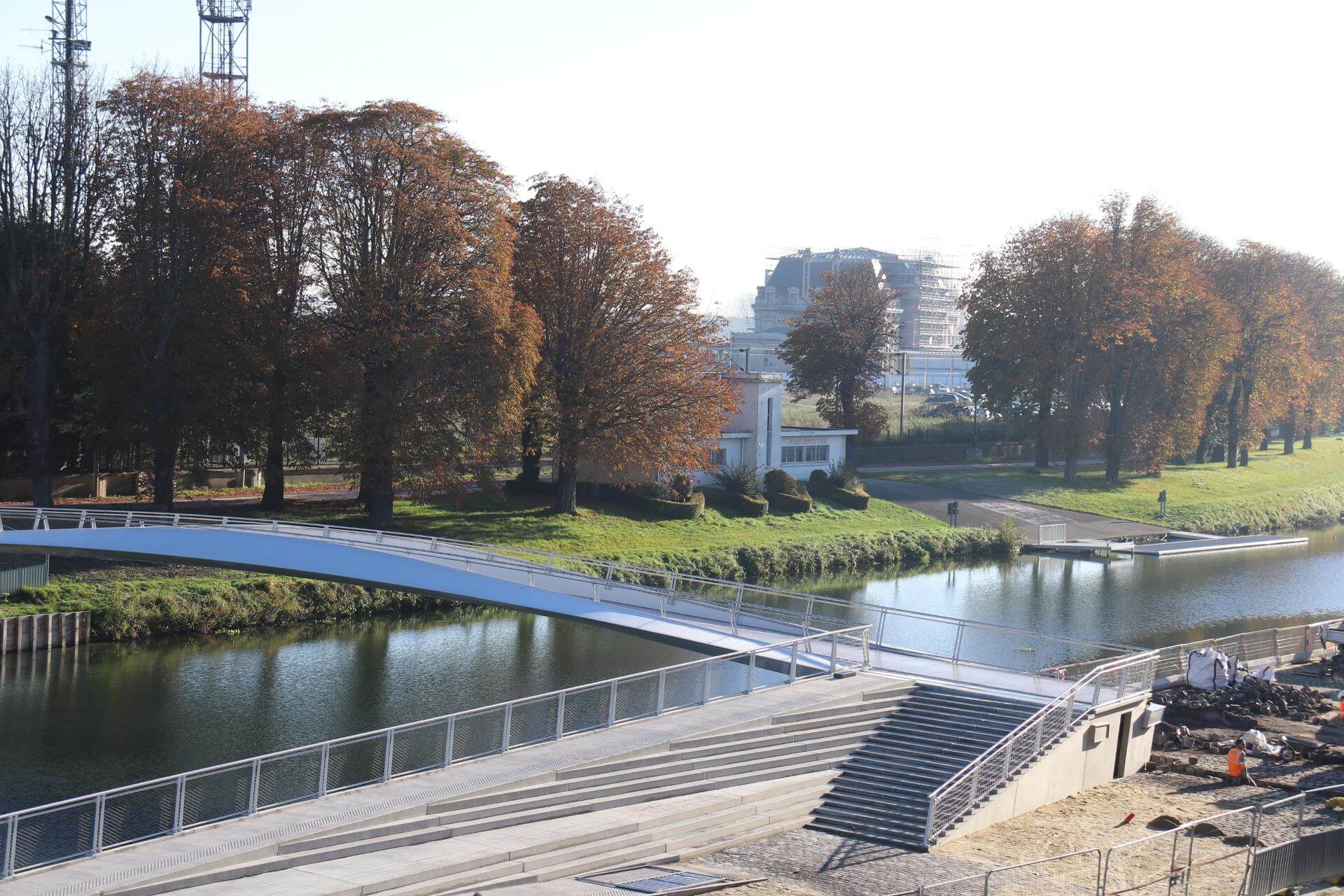 C’est un fil, un lien aérien, contemporain et léger entre les deux rives de l’Aa. La rive industrieuse et travailleuse d’un côté, la rive rêveuse et bucolique de l’autre. Inaugurée le samedi 25 novembre 2017, la passerelle piétonne et cycliste enjambe désormais le canal de Saint-Omer. Elle relie l’allée des Marronniers au quai du commerce, juste en bas de la rue de Dunkerque. François Decoster, président de la Communauté d’Agglomération du Pays de Saint-Omer, y voit : « un geste très important pour les circulations douces ».