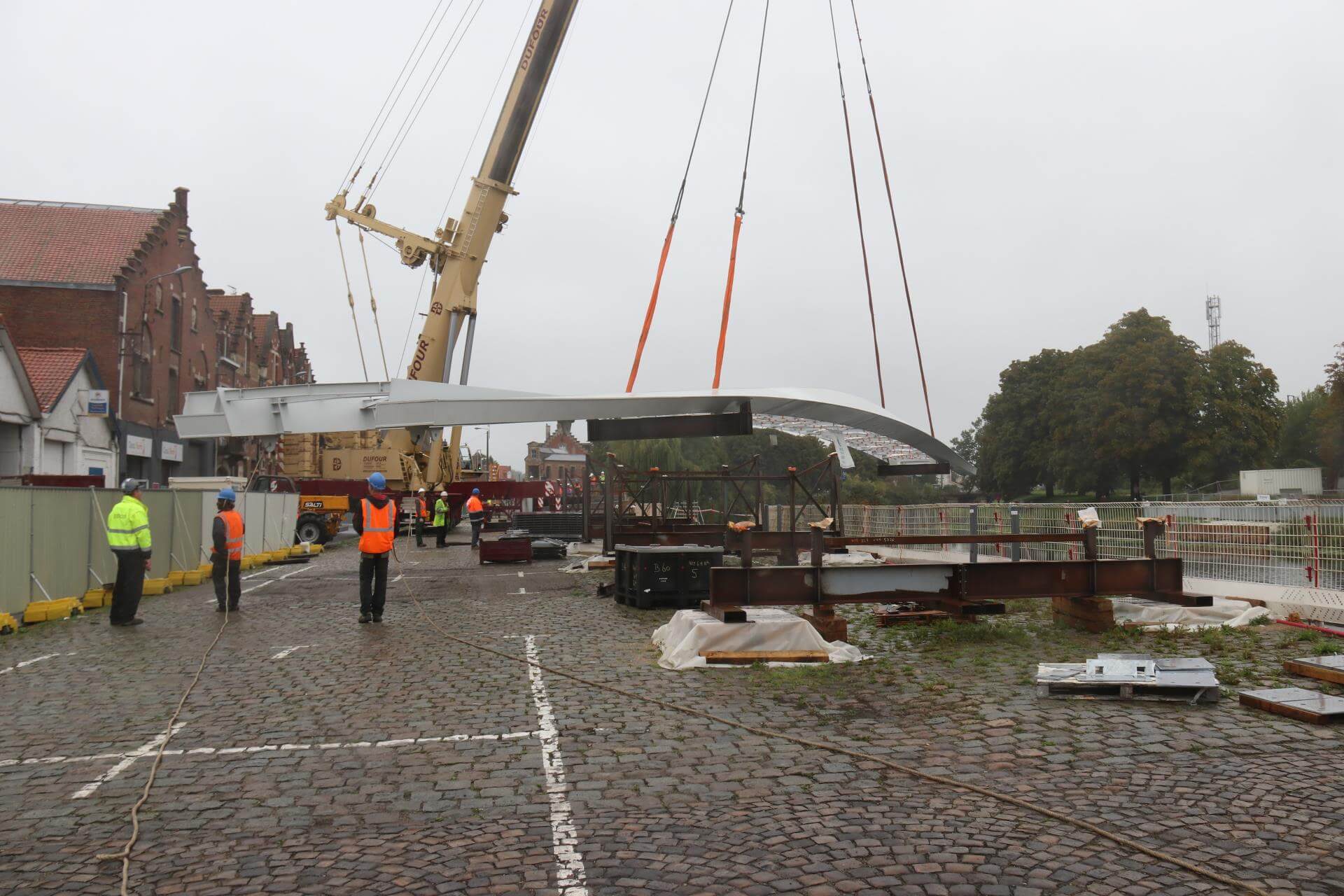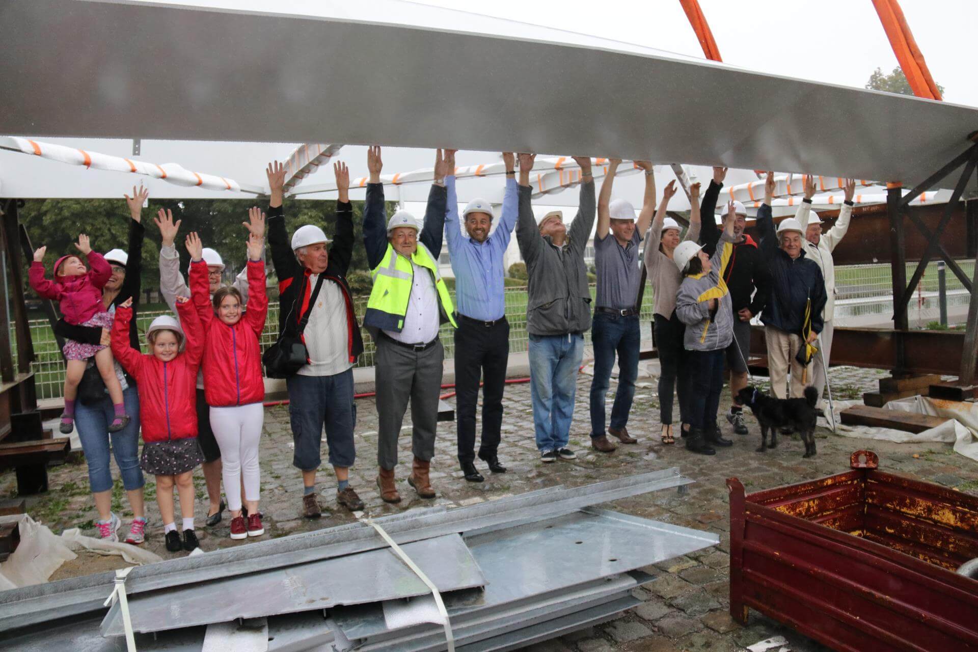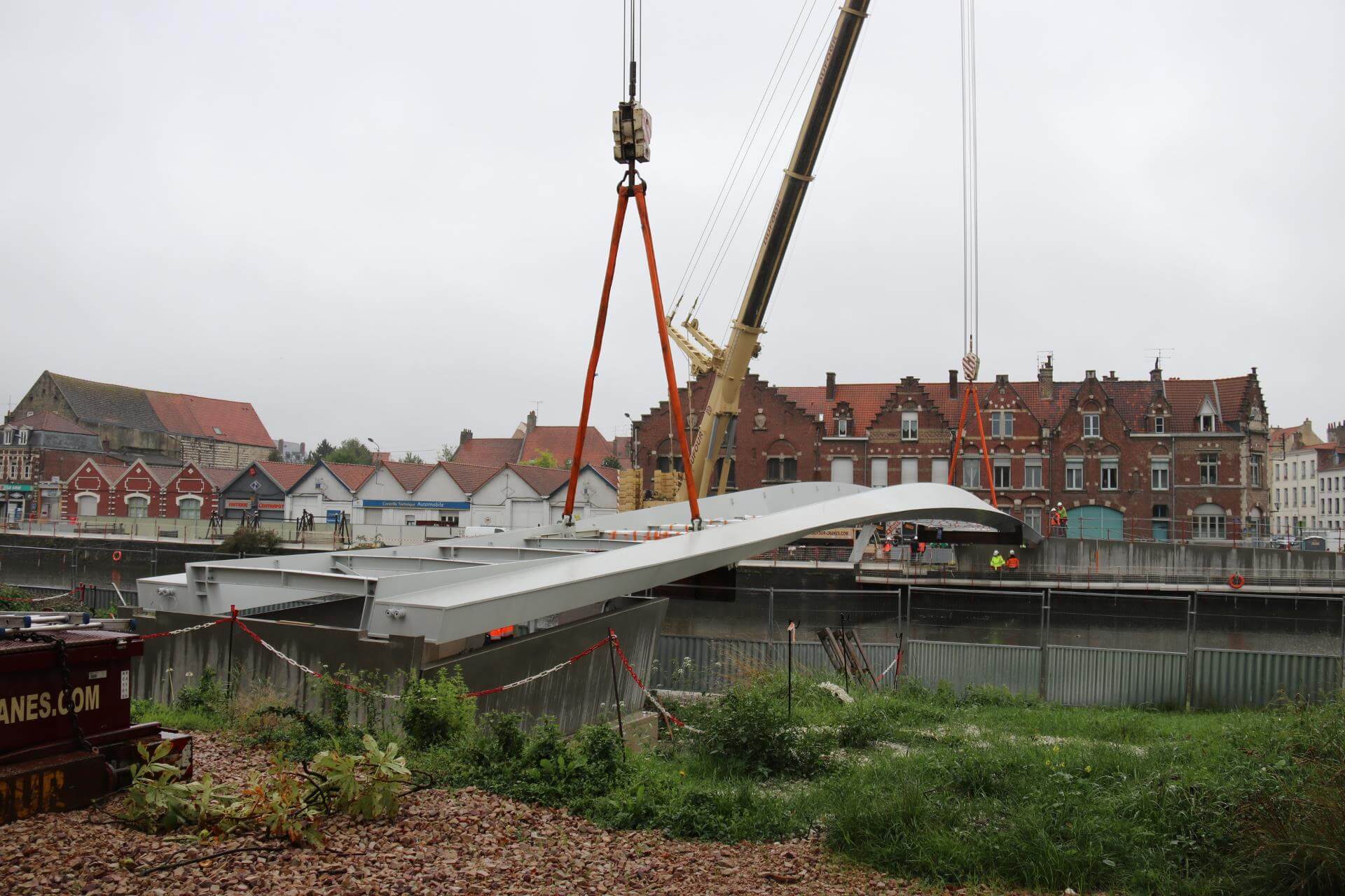 Réalisé par ACML, sur les plans de Bertrand Potel l’architecte, la passerelle a été assemblée sur le quai du commerce avant d’être posée le mercredi 30 août 2017. Ce jour-là, deux grues gigantesques avaient interprété un ballet impressionnant sous les yeux subjugués des riverains.