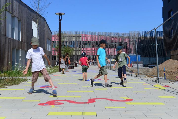 Après le démantèlement des fortifications, un travail de couture a été réalisé avec le cœur de ville et l’on a conservé les mêmes hauteurs et gabarits de construction. La couleur brique rouge et le style architectural du quartier marquent une différence avec le centre-ville et ses constructions en brique jaune.